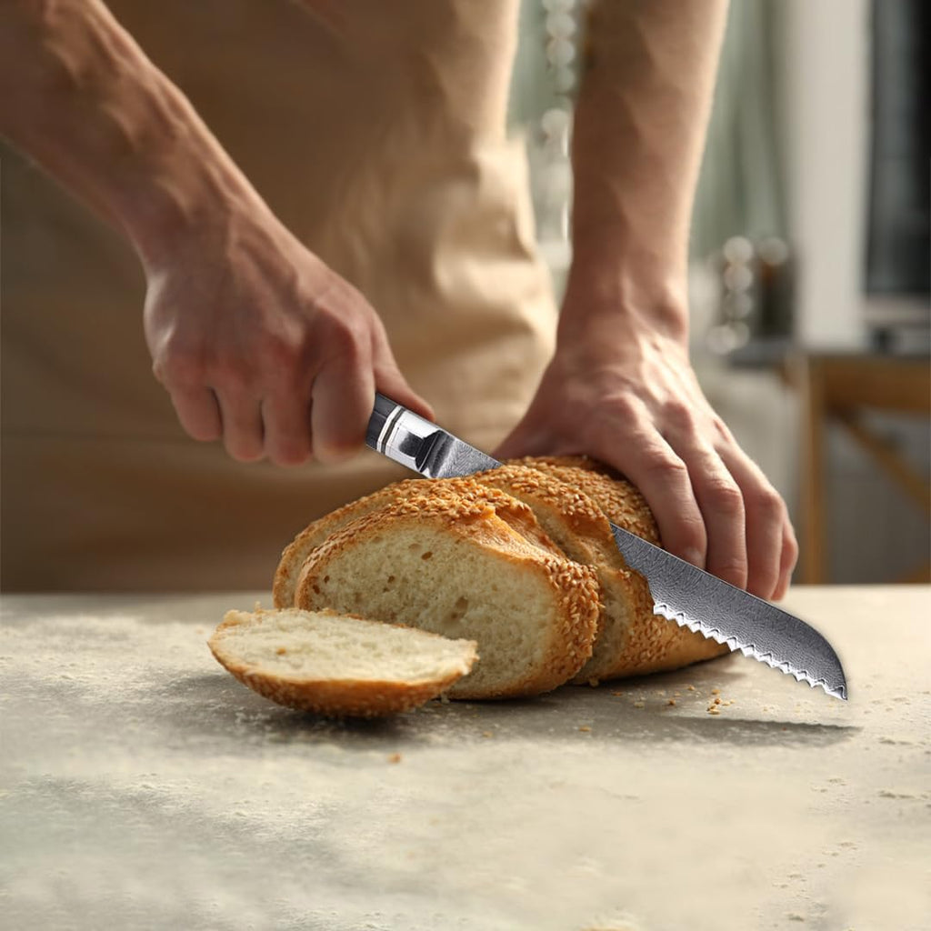 ✅ SCALPEL LIKE SHARPNESS FOR EFFORTLESS CUTTING- VG-10 super steel hand sharpened to 12-15 degree angle gives you the experience of buttery smooth cutting with the precision of a scalpel because of 60 HRC stiffness provided by Damascus forged steel.
