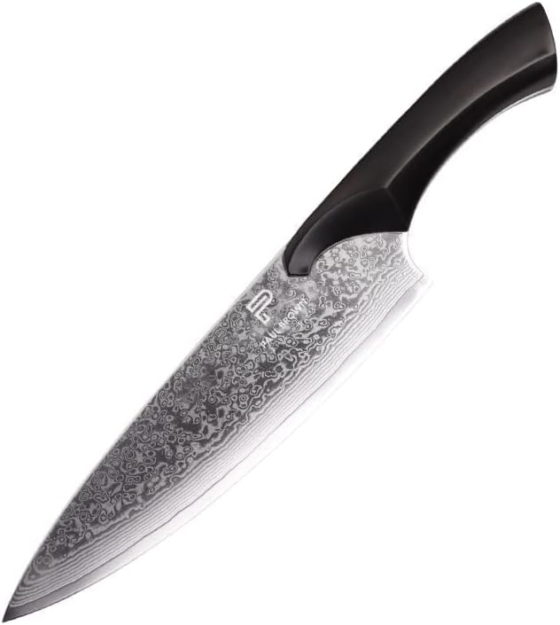 The PAUL BROWN Cheetah Series 8-Inch Chef Knife is a statement of power, precision, and craftsmanship. Forged with a VG10 Japanese steel core and enveloped in 67 layers of Damascus steel, this blade combines razor-sharp performance with stunning durability. Its distinctive Damascus pattern reflects the artistry of traditional Japanese forging, while the ergonomic ebony wood handle ensures a luxurious feel, exceptional balance, and superior grip. Designed for both professional chefs and passionate home cooks, the Cheetah Series knife glides effortlessly through meat, vegetables, and herbs—delivering control, speed, and elegance in every cut.