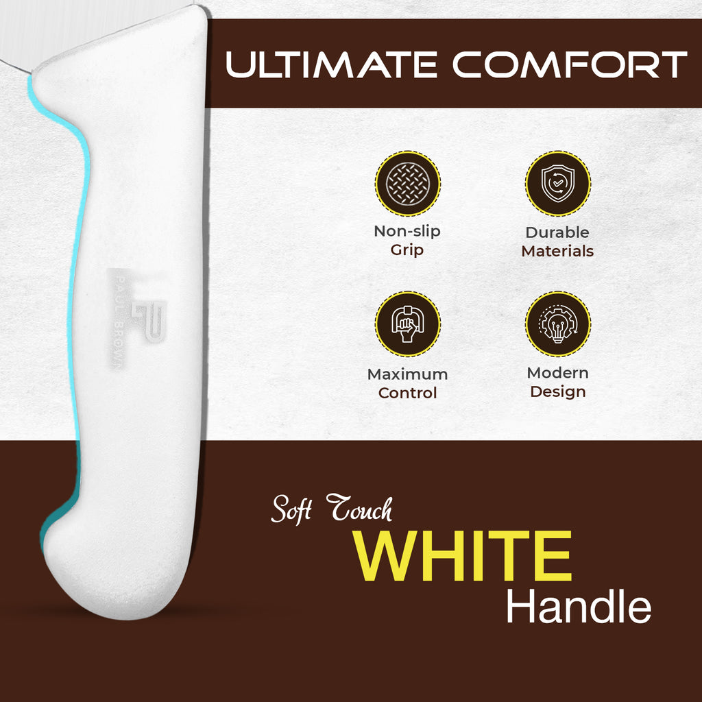 - Soft-touch white handle offers a secure, comfortable grip for extended use without fatigue.