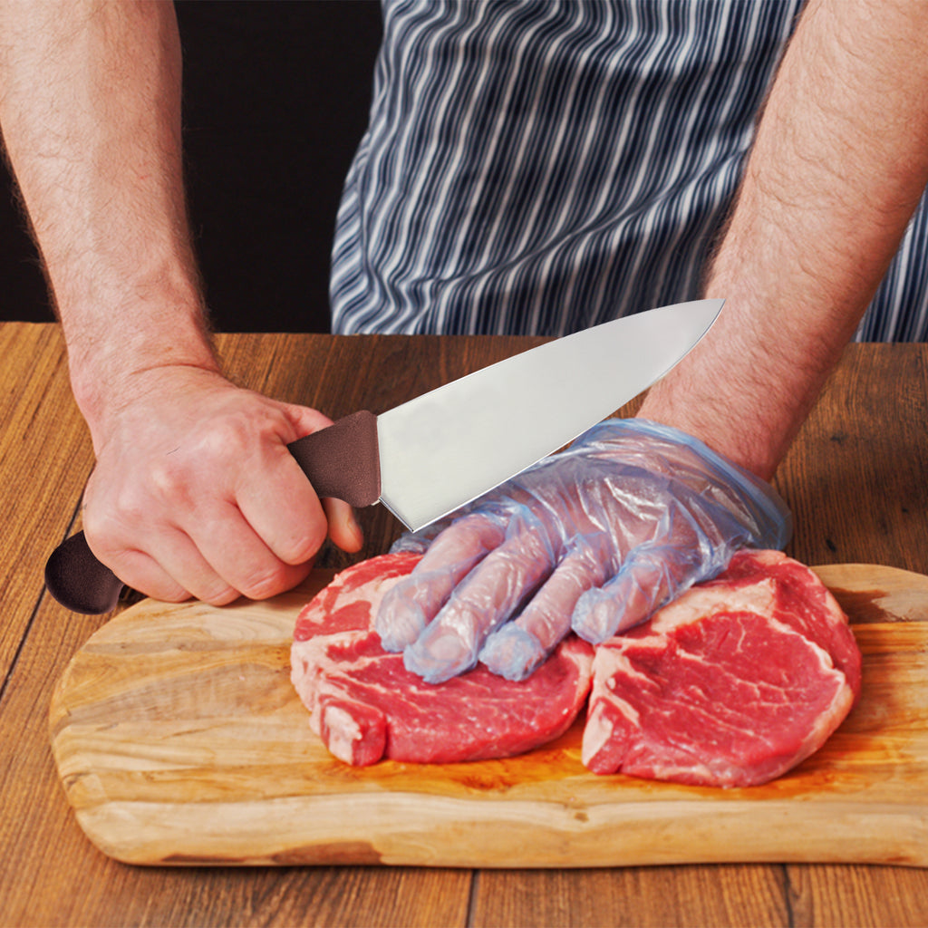 Elevate your culinary experience with our premium 6-inch chef knife, crafted from high-quality X50CrMov15 stainless steel for exceptional durability and edge retention. Designed for both professional chefs and home cooks, this versatile knife delivers precise cuts through meats, vegetables, and more. The ergonomic soft-touch brown handle offers a comfortable grip, reducing fatigue during extended use and adding a vibrant touch to your kitchen tools. Its balanced weight and sharp, durable blade make it essential for efficient and enjoyable cooking.