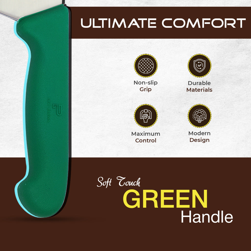 Elevate your culinary experience with our premium 6-inch chef knife, crafted from high-quality X50CrMov15 stainless steel for exceptional durability and edge retention. Designed for both professional chefs and home cooks, this versatile knife delivers precise cuts through meats, vegetables, and more. The ergonomic soft-touch green handle offers a comfortable grip, reducing fatigue during extended use and adding a vibrant touch to your kitchen tools. Its balanced weight and sharp, durable blade make it essential for efficient and enjoyable cooking.