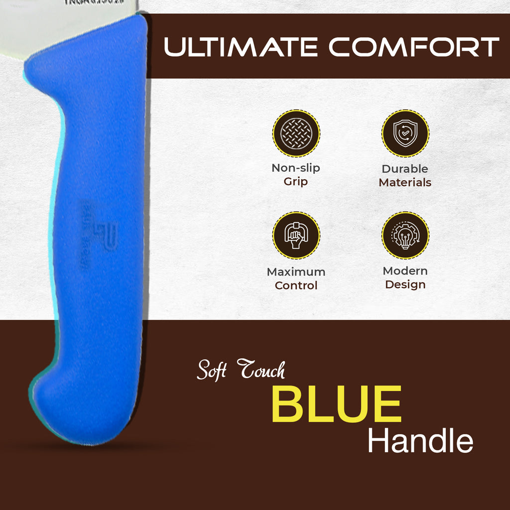Elevate your cooking experience with the 10-Inch X50CrMov15 Chef Knife, designed for both professional chefs and home culinary enthusiasts. The blade is crafted from high-quality stainless steel for excellent edge retention, sharpness, and durability, making every cut precise and effortless. Its ergonomic soft-touch blue handle provides a comfortable grip and adds a vibrant touch to your kitchen tools. Whether you're chopping vegetables, slicing meat, or dicing herbs, this versatile chef’s knife offers exceptional control and performance, ensuring your kitchen tasks are completed efficiently and with ease.