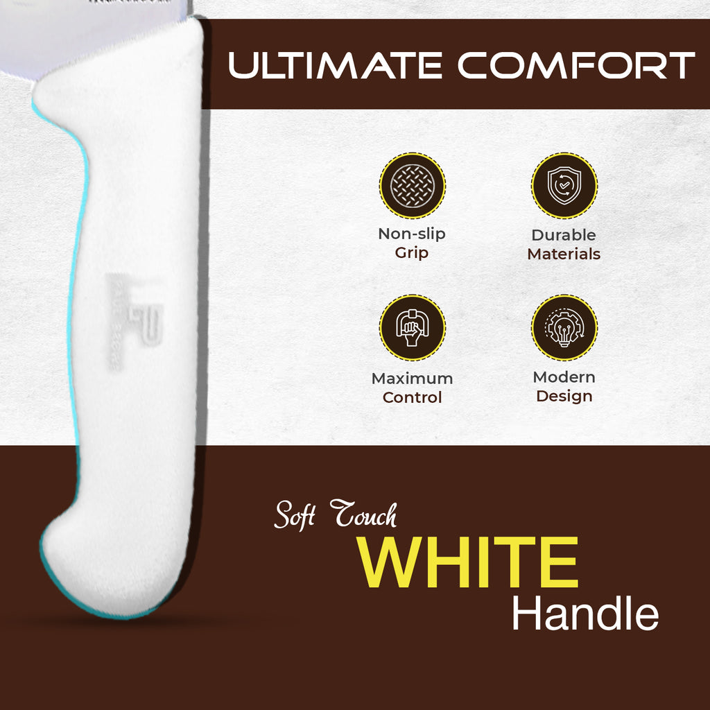 • Soft-touch white handle offers a secure, comfortable grip for extended use without fatigue.